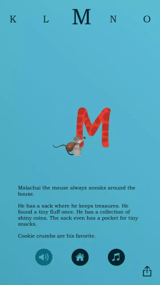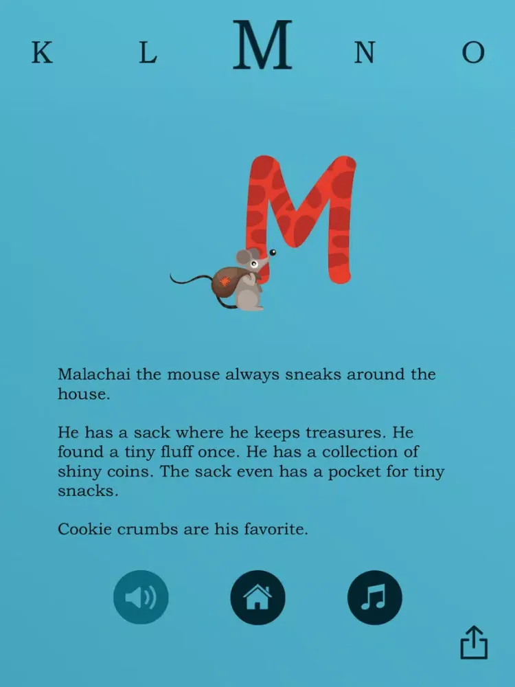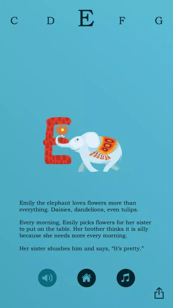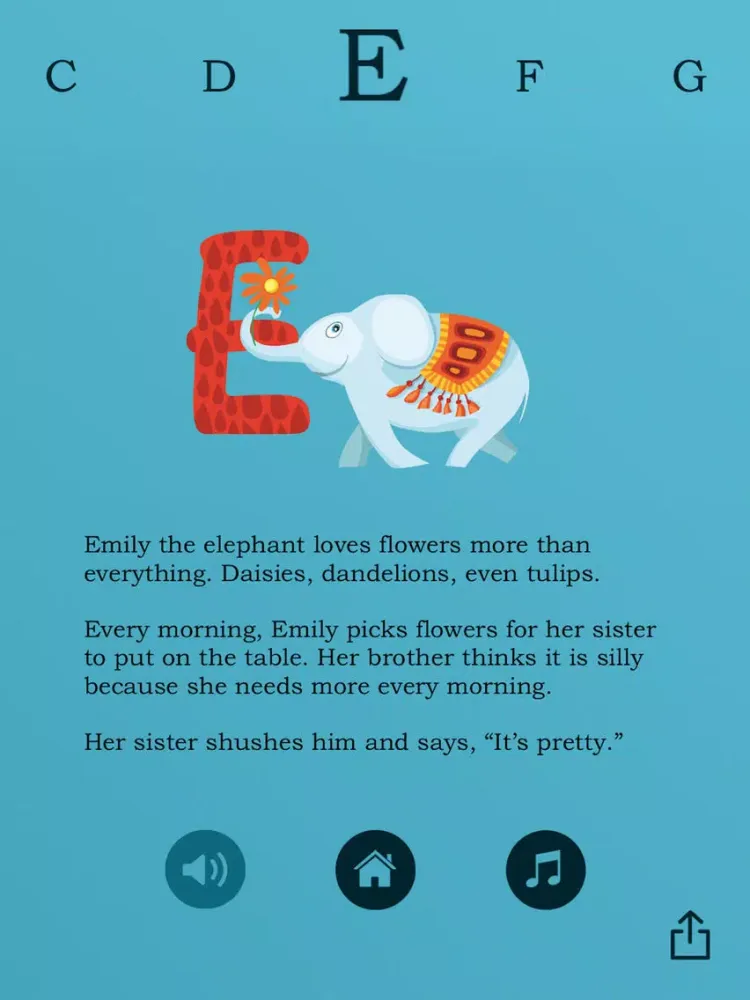 The app also features a peaceful original soundtrack to help you transition your child to a nap or restful activity. Narration and music can be turned on or off by pressing the buttons at the bottom of your screen.