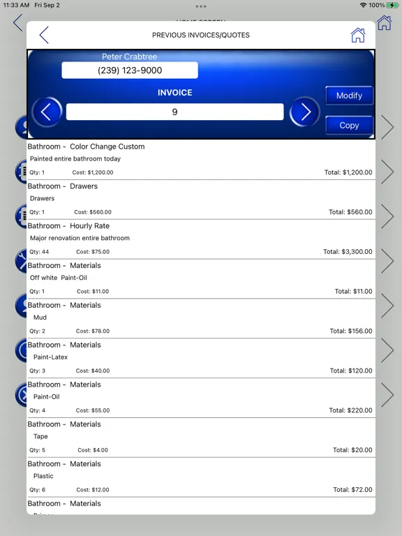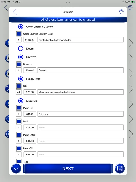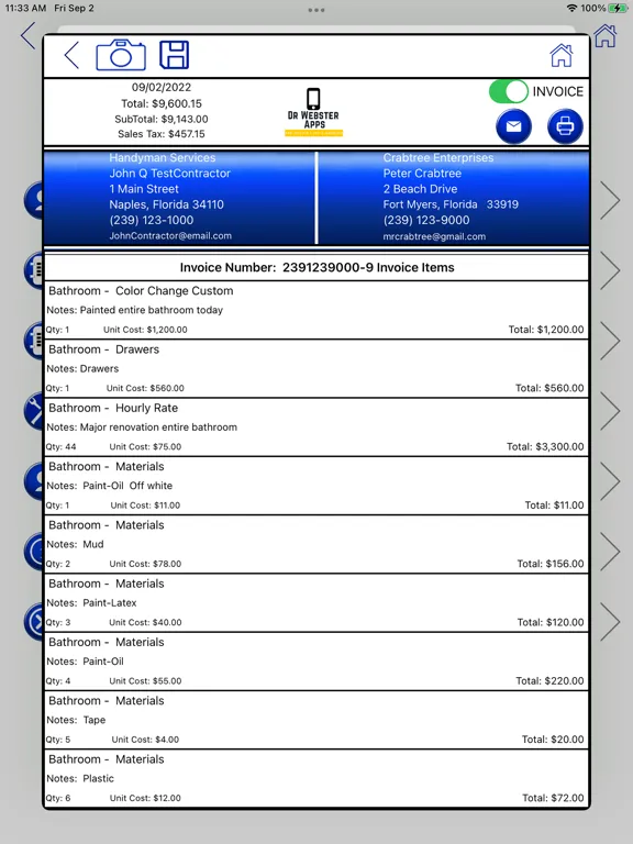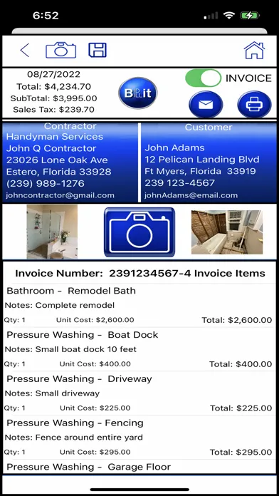 Use BiditBillit to create a quote/invoice onsite or take notes on jobs to finalize later