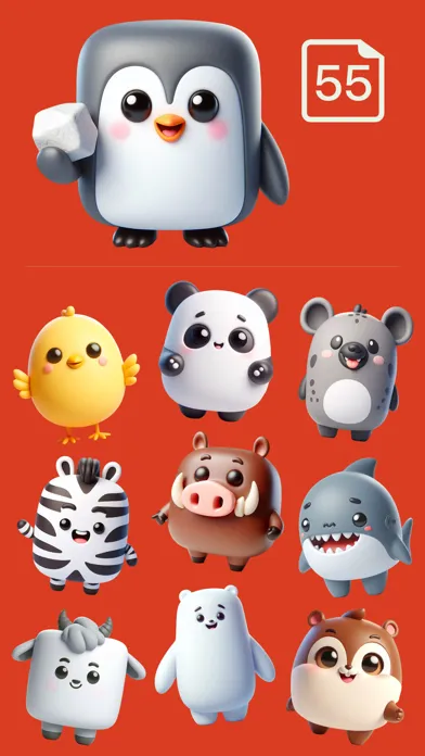 Add some fun to messages with this 55 animal sticker pack featuring cute squishy creatures.