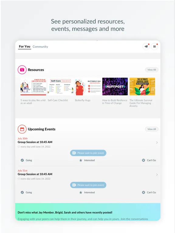 Share updates, ask questions, support others, and stay connected with others throughout your recovery. This community is a tool to help you in recovery and receive support when you need it the most.
