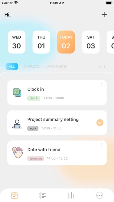 Daily task arrangement, when there are many tasks and time management is chaotic, use the catfish plan to list them one by one, you can intuitively see the name of the task and the task time period, and you can also set a reminder, don't worry about missing time Situations that lead to overlapping tasks.