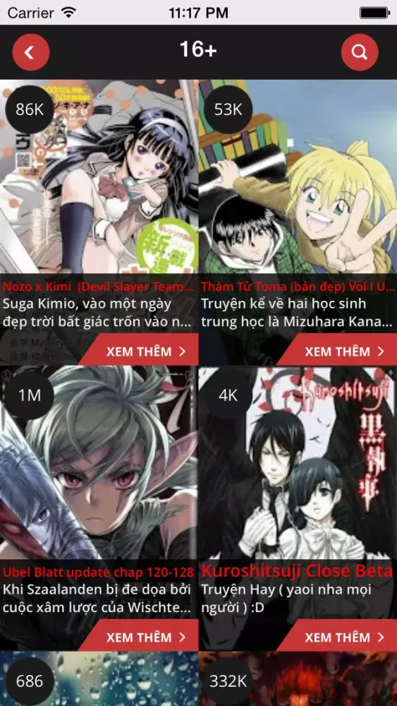 ● Gồm nhiều thể loại truyện hấp dẫn được cập nhật liên tục.