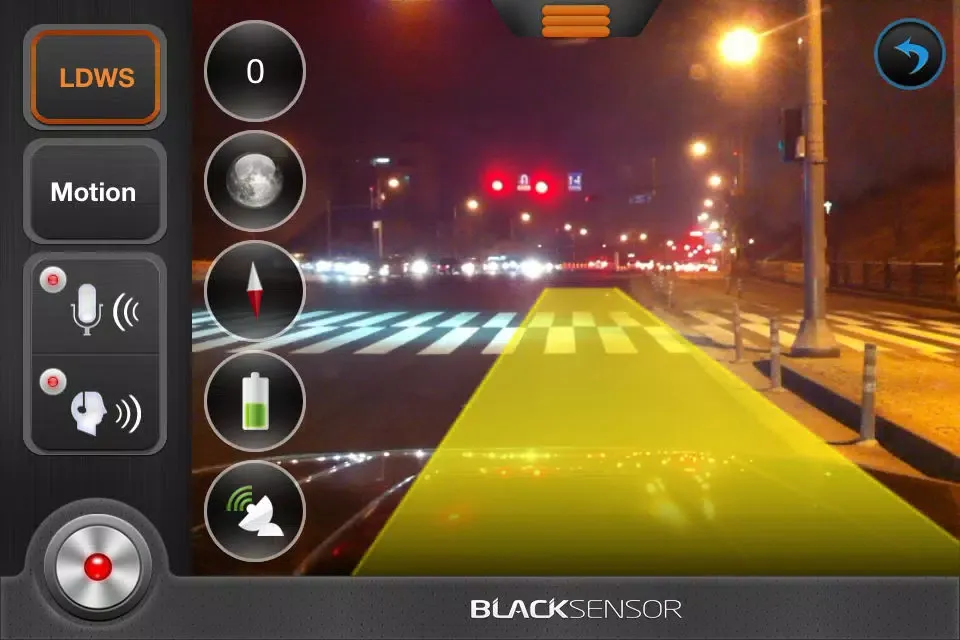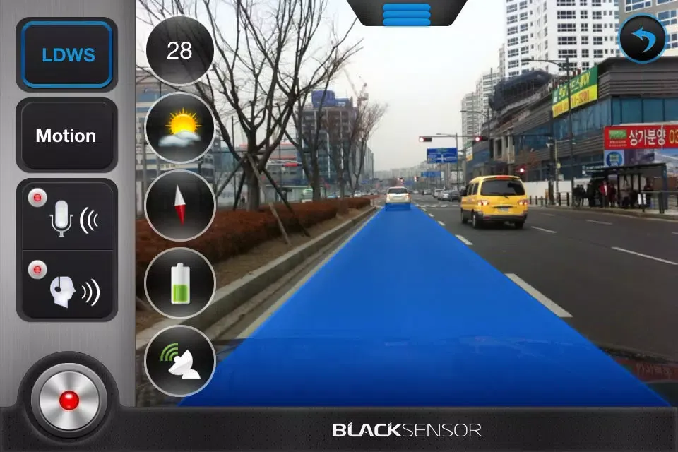 World 1st Driver Assistance Application (vision recognition) connected with its own BlackBox Device. LDWS (Lane Departure warning), Motion detection and Car Blackbox are supported. Via Wireless LAN connection, this App (BlackSensor lite / Pro) can be synchronized with BlackSensor Devices (BS-100, BS-200B and etc).