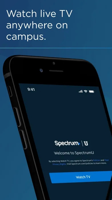 Download the SpectrumU App and get the most out of your Spectrum TV experience on campus. Stream live TV or thousands of On Demand shows and movies. SpectrumU is available at participating colleges and universities. Connect to your campus WiFi to access your available services.