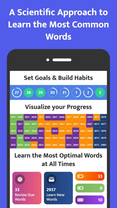 - You can understand your current study level and progress and monitor the current states of all 3000 most common words with a single glance from the main screen