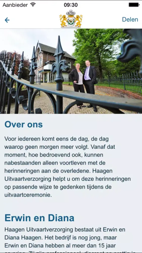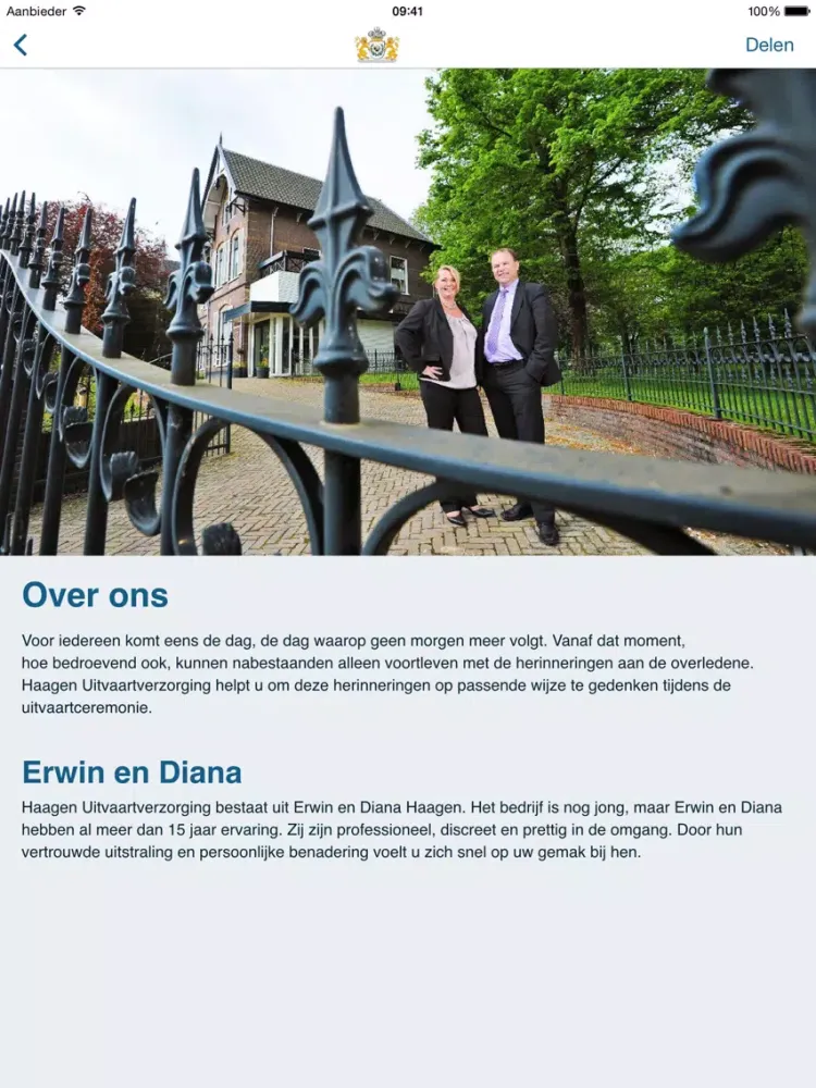 Screenshot di Haagen Uitvaartverzorging iPad