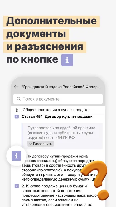 Используйте Быстрый поиск. Просто введите в поисковую строку вопрос, понятие или опишите проблему, как в интернет-поисковике (например, «как продлить срочный трудовой договор», «аудит» или «право собственности»), и приложение подберет документы с ответами и решениями. Поиск понимает такие разговорные слова и общепринятые сокращения, как «бухучет» или «НДФЛ». Например, на запрос «НДС при упрощенке» будут найдены документы, которые содержат слова «НДС», «УСН», а также «налог на добавленную стоимость», «упрощенная система налогообложения» во всех падежных формах. Чтобы найти конкретный документ, просто введите его название: «44 ФЗ», «бюджетный», «семейный» или «земельный кодекс» – и он будет первым в списке найденных. Облегчает работу с приложением возможность использовать аббревиатуры: УК, НК, ГК, КоАП, ГПК, УПК, ТК и пр.