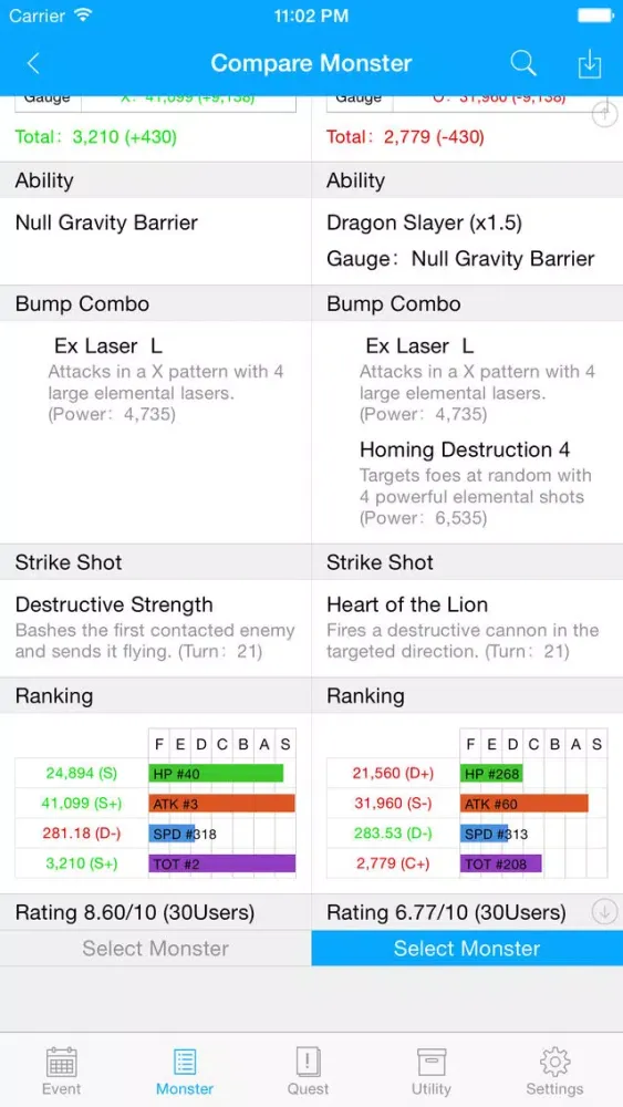 2. Monster List & Monster Compare