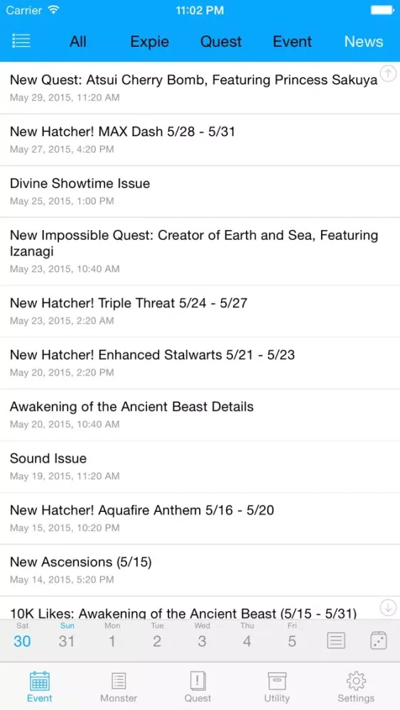 Check events and dungeon schedules of Monster Strike. You can also set alarms!