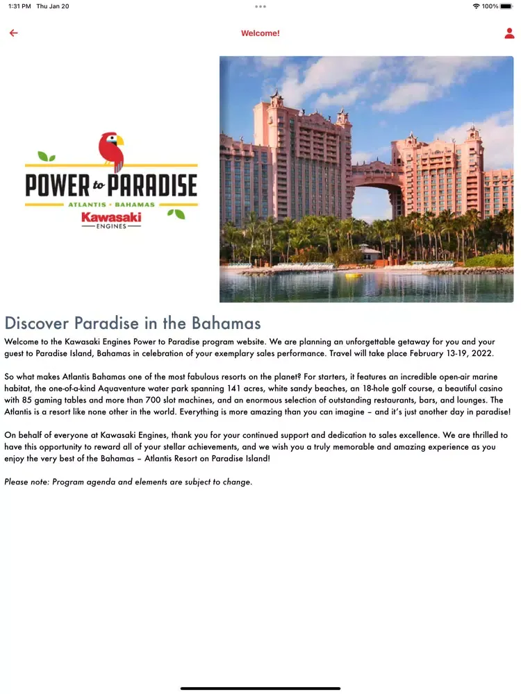 Welcome to the Power to Paradise EventAPP! This app will be your tool for up-to-date information, agendas, photos, communications and much more!