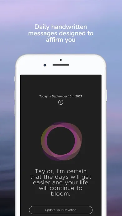 Devotion is a free tool of affirmation from Euphoria (the makers of Solace, Clarity, Bliss, and Windfall), which can intelligently tailor messages based on your gender and your mood.