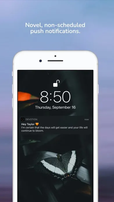 The messages (“devotions”) in Devotion are written on a daily basis, by real people. Devotion was designed by transgender individuals and LGB+ Allies to the community. Devotions are sent out Monday-Friday (excluding holidays). Messages are sent out at the time the writers deem best, so you won’t find a specific rhythm to the notifications or updates.