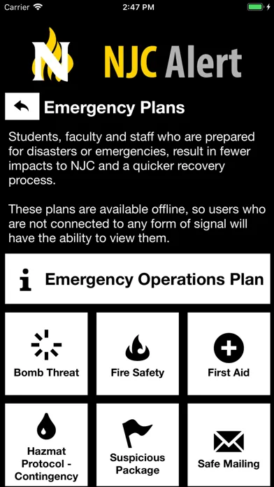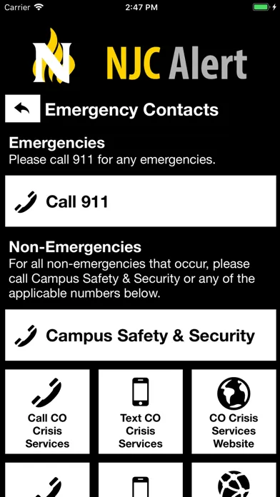 NJC Alert is the official safety app of Northeastern Junior College. It is the only app that integrates with NJC's safety and security systems. Campus Safety & Security has worked to develop a unique app that provides students, faculty and staff with added safety on the Northeastern Junior College campus. The app will send you important safety alerts and provide instant access to campus safety resources.