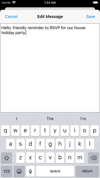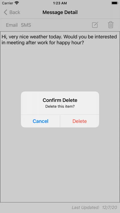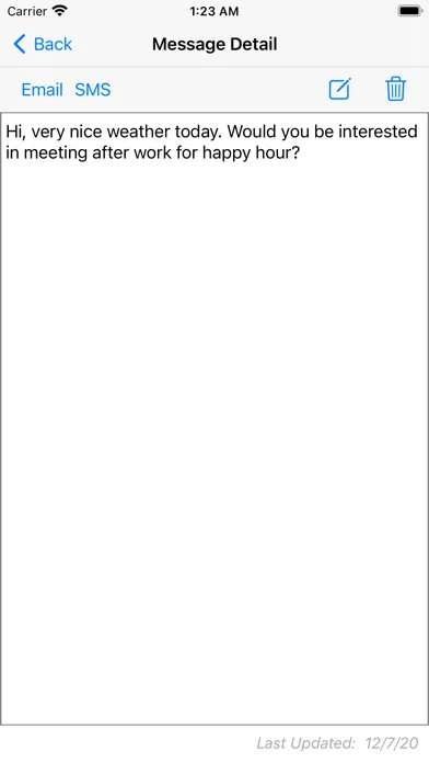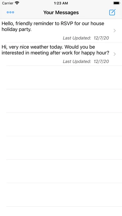 This application allows you to create a list of frequently used messages and SMS or email one of these messages to a contact.