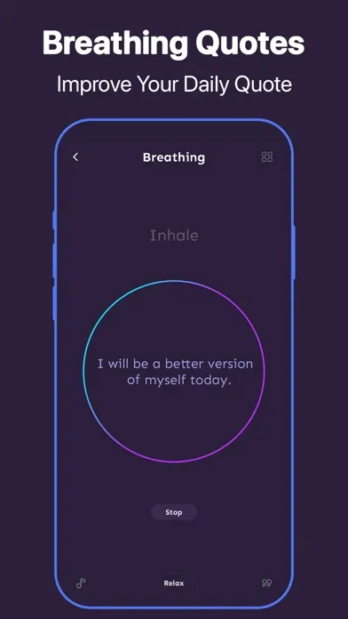 You can simultaneously breathe and practice your favorite quotes and affirmations. This effective and innovative method will help you concentrate and get more from affirmations and quotes. Besides that, it will be helpful in relieving stress and relaxing after a working day. It’s always at hand. If you wish, you can turn off the text block and practice breathing without it.