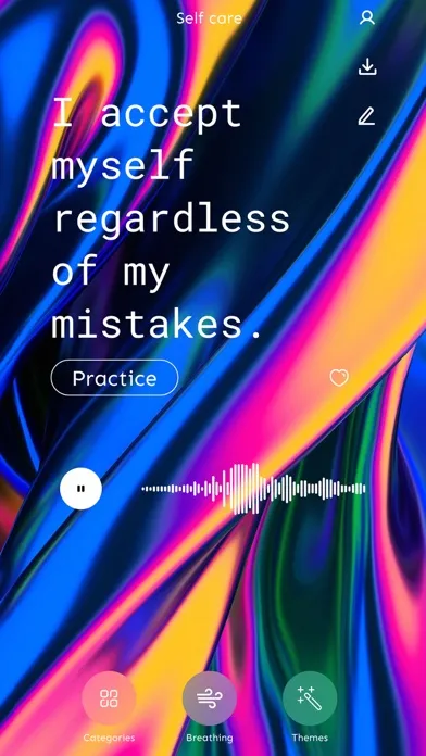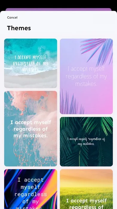 Or do a standard practice with your favorite affirmation. You can also choose any theme and add reminders. Favorite quotes can be saved to your “favorites” folder to keep coming back to it.