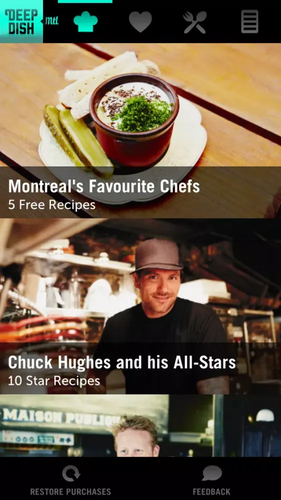 Cook and eat like the pros! DeepDishMTL features over 50 killer recipes from 6 of Montréal's top chefs. You'll get 5 FREE RECIPES to start, and the app is chock full of chef secrets, tips and tricks of the trade... not to mention gorgeous step-by-step photography.