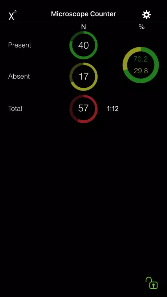 • Since Microscopists often work in darkened rooms the background of Microscope Counter is black to reduce the amount of light produced by the app and hence interference with the microscope image. The Intensity of text elements on the screen can be further reduced in the Settings (this has no impact on the screen brightness of other apps)
