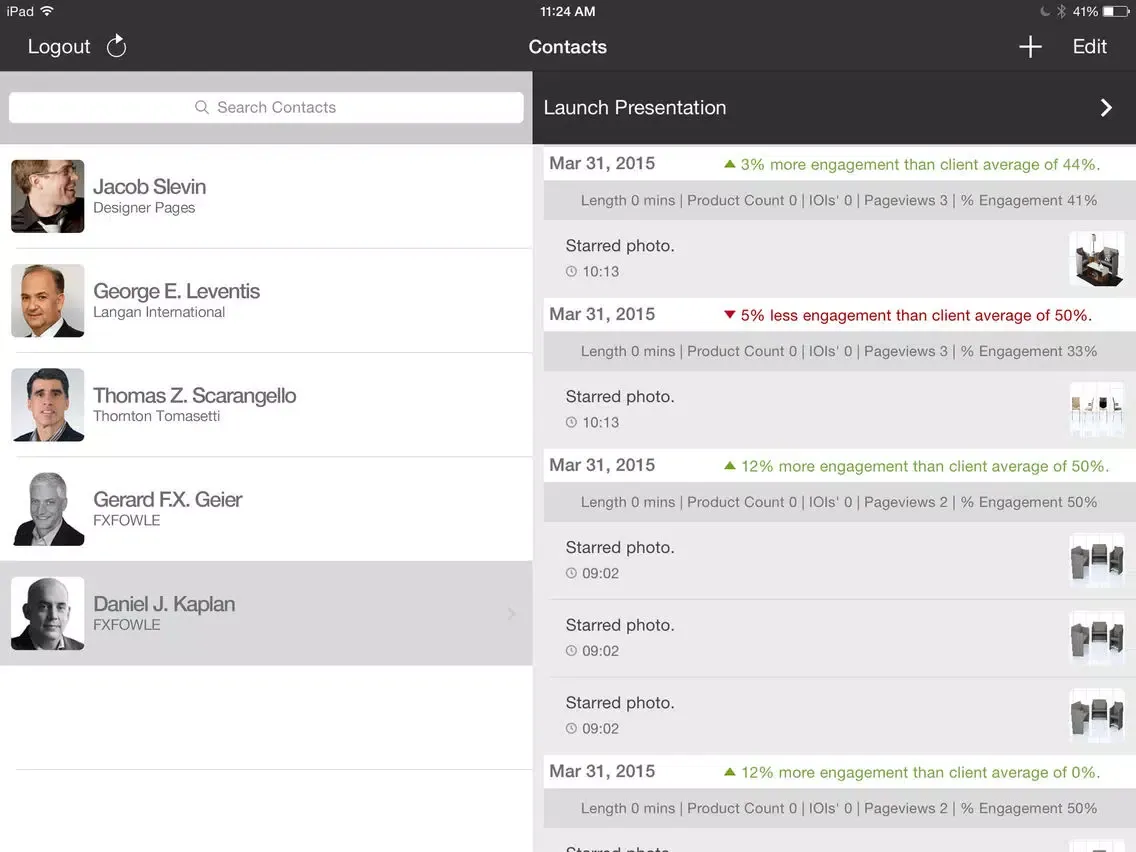 Keep track of what products are presented to what clients, as well as, clients’ favorite products, questions and comments.