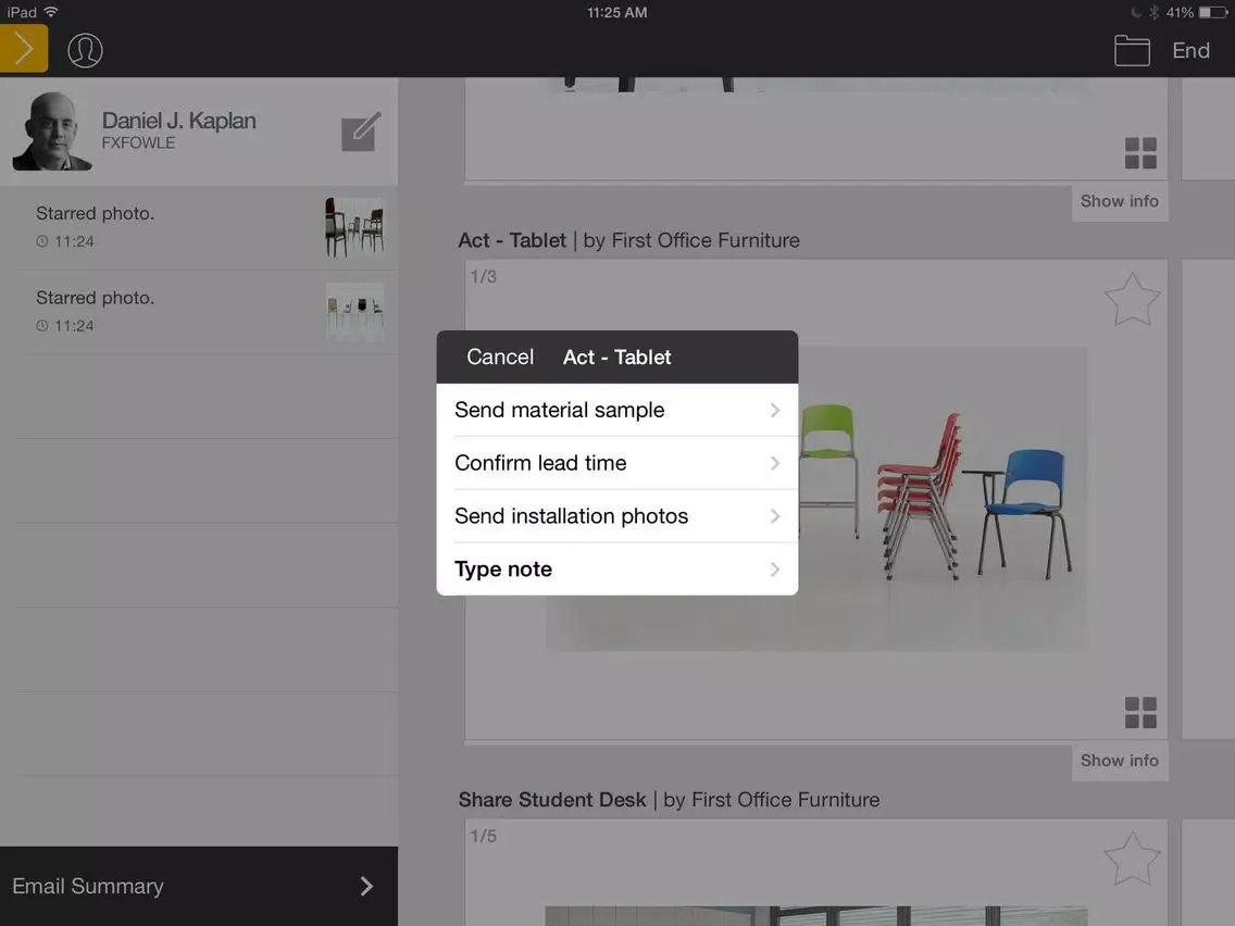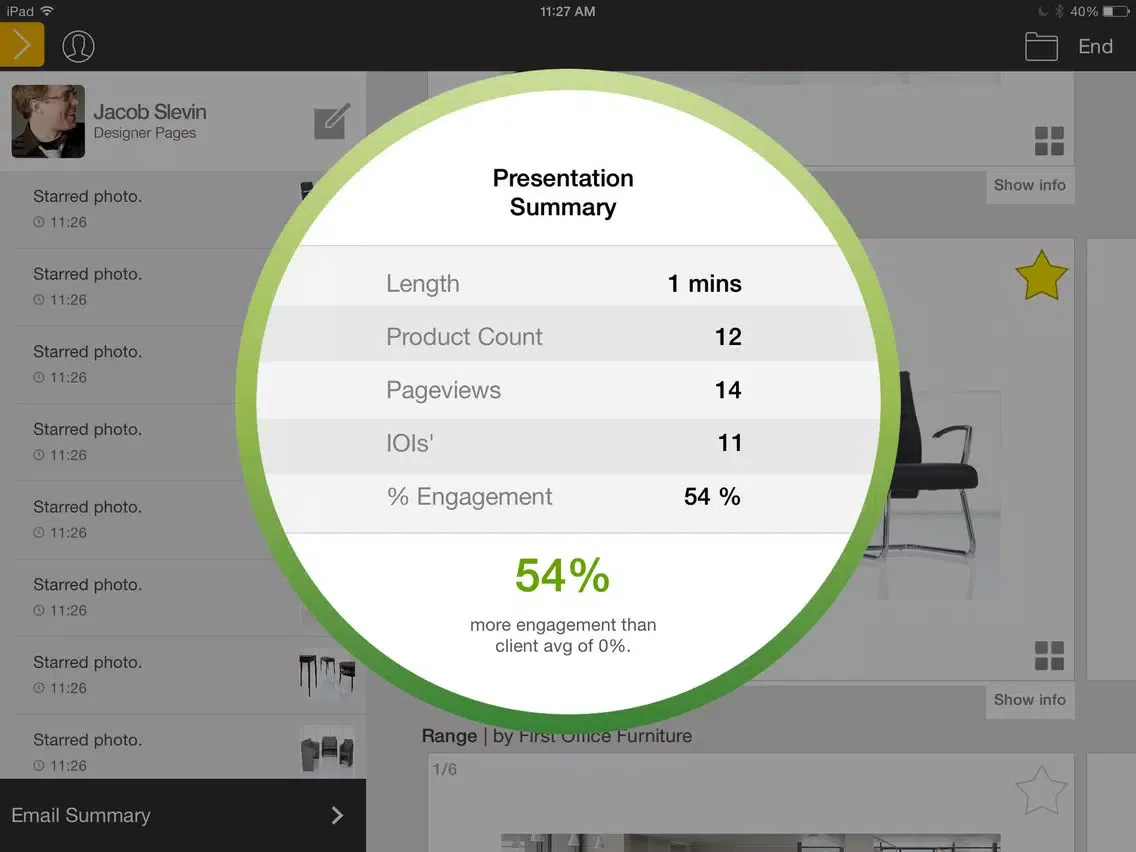 The App facilitates sales reps’ following up with clients immediately following sales calls with direct links to those products that piqued interest.