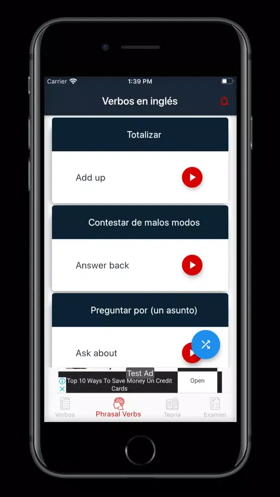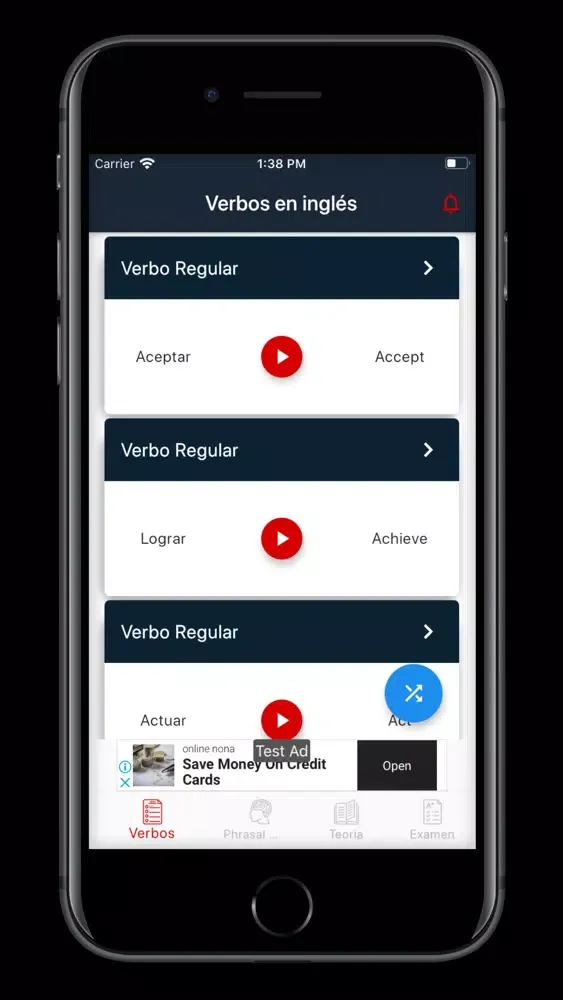 Verbos en inglés es una aplicación que te permite practicar y aprender los verbos en ingles en diferentes conjugaciones.