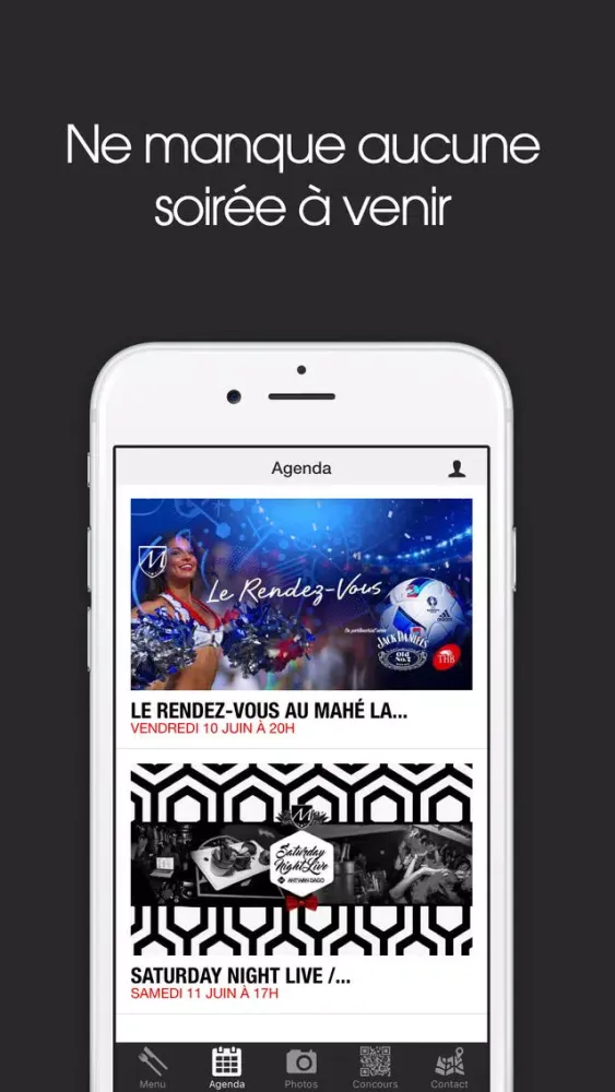 - Agenda : consultez les soirées à venir.