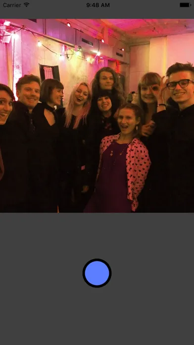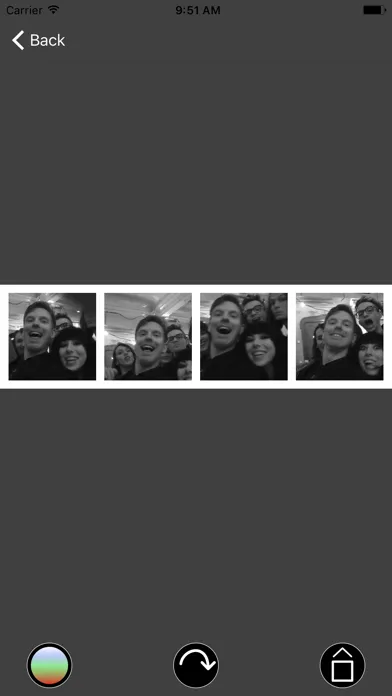 Using the app is simple: grab some friends, press the button, and go wild! The camera will automatically take 4 photos, 1 second apart.