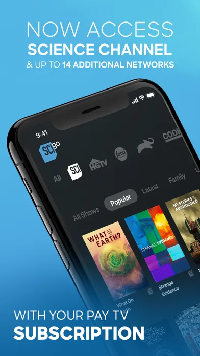 Catch up with your favorite Science Channel shows anytime, anywhere with the all-new Science Channel GO app - and now get access to up to 14 additional networks including Discovery, Travel Channel, ID, TLC and more - all in one app. It’s FREE with your pay TV subscription.