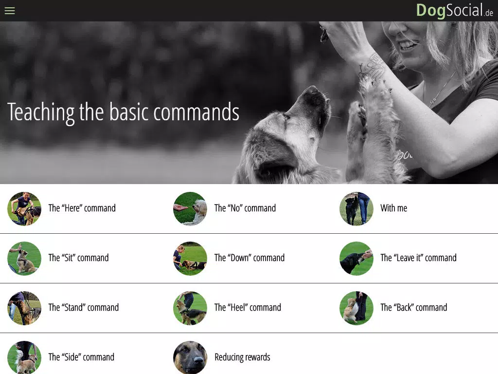 In the first app “DogSocial - teaching the basic commands”, learn how to teach your dog the important and necessary basic commands. And in a way that actually works!