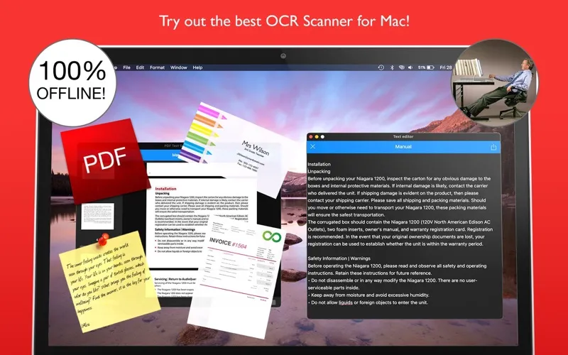 Easy to use, just select the PDF file you want to scan, i.e. an invoice, a business card, a bill, a contract, or a note and the application will do the rest