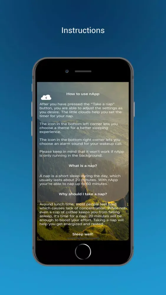 nApp is not only an alarm clock for power naps, it's much more. Enhance your sleeping experience with the beautiful sounds nApp has to offer.