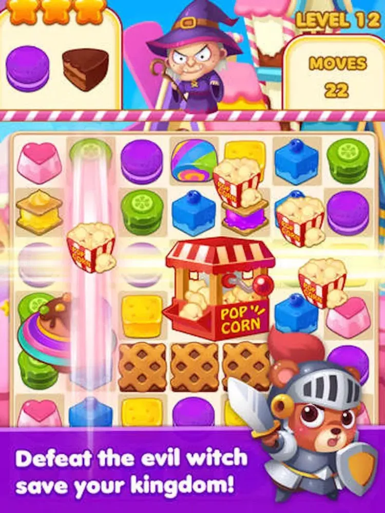 Candy Cake Chef is a fun and challenging match 3 puzzle game!