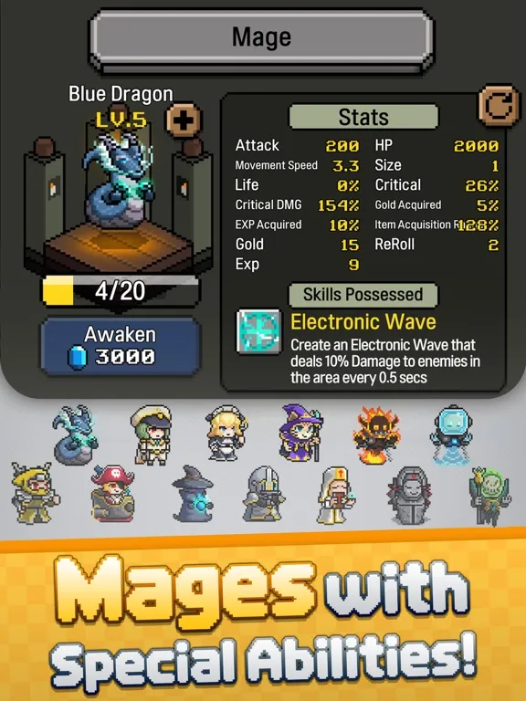 ▶ Bang bang! Summon 20 Mages with unique magic spells, ranging from gun-shooting magic to Black Holes, Meteors, and more.