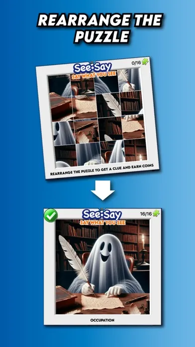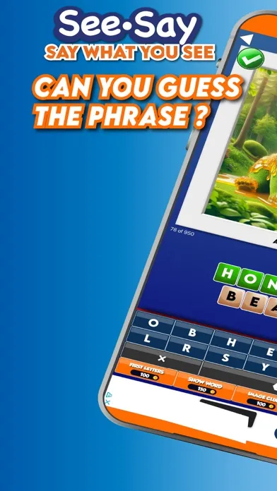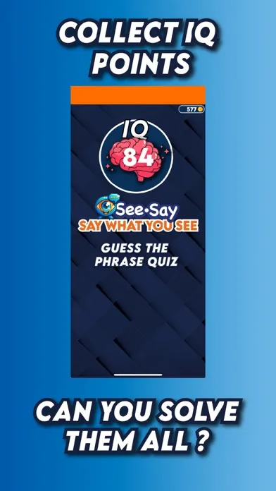 Dive into the world of SEE-SAY, the ultimate **image-based word and phrase guessing game** that will challenge your mind and keep you entertained for hours! If you love puzzles, quizzes, and fun pics, then SEE-SAY is the perfect game for you. Unlike other games this game isn't a set of standard images where you try to find the word. In SEE_SAY there is one image that has been specifically and been cleverly developed to enable you to guess the phrase or words represented by the image provided. "Just Say what you see". they get harder as the quiz goes on .. over a 1000 levels with more being added daily to challenge you. A daily challenge is also available to solve over a coffee or on the train.
