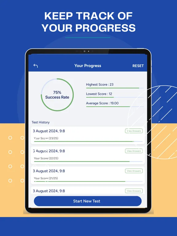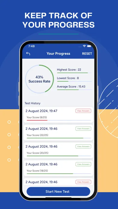 The application keeps history of how you have performed in the previous mock tests so that you get an idea of your progress.