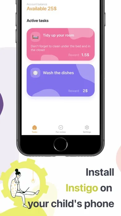 Your children surely have many chores in the house and at school. And you probably give them pocket money. Instigo allows you to combine business with pleasure. Instigo makes the pocket money much more useful to your kids.
