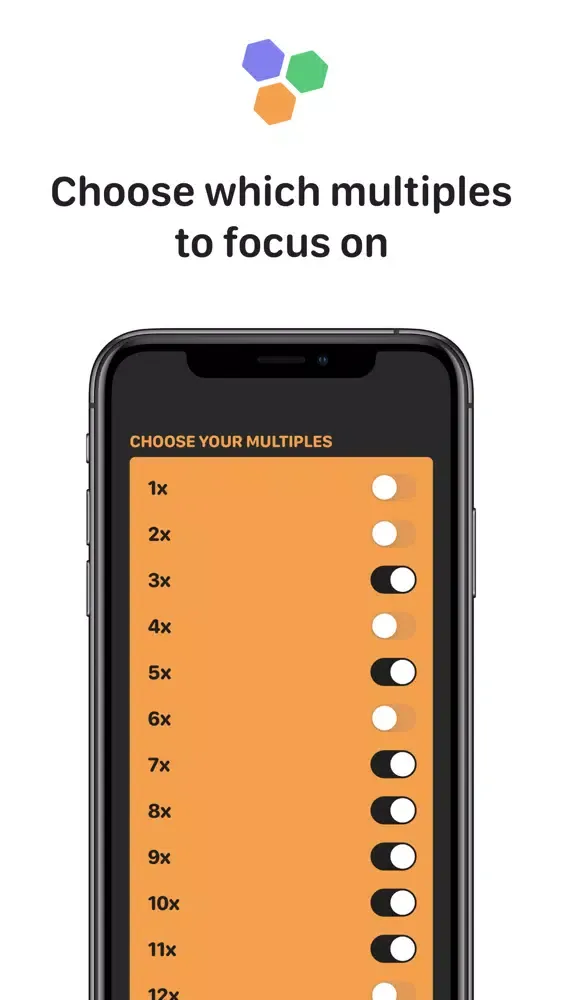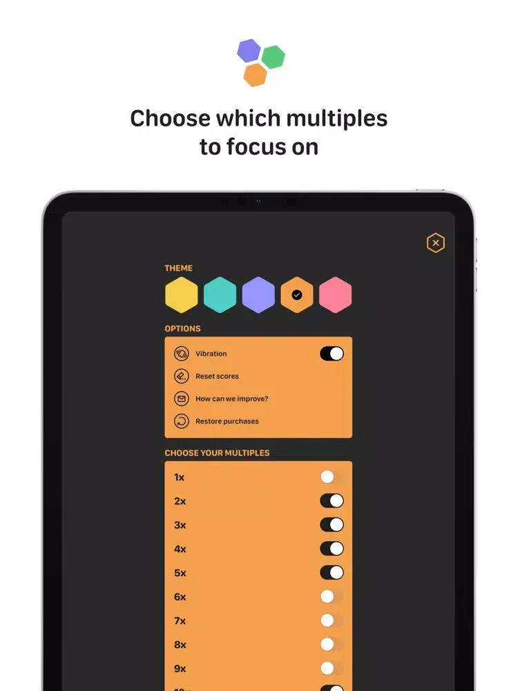 - Select which numbers and multiples you want to work on in order to focus your practice.