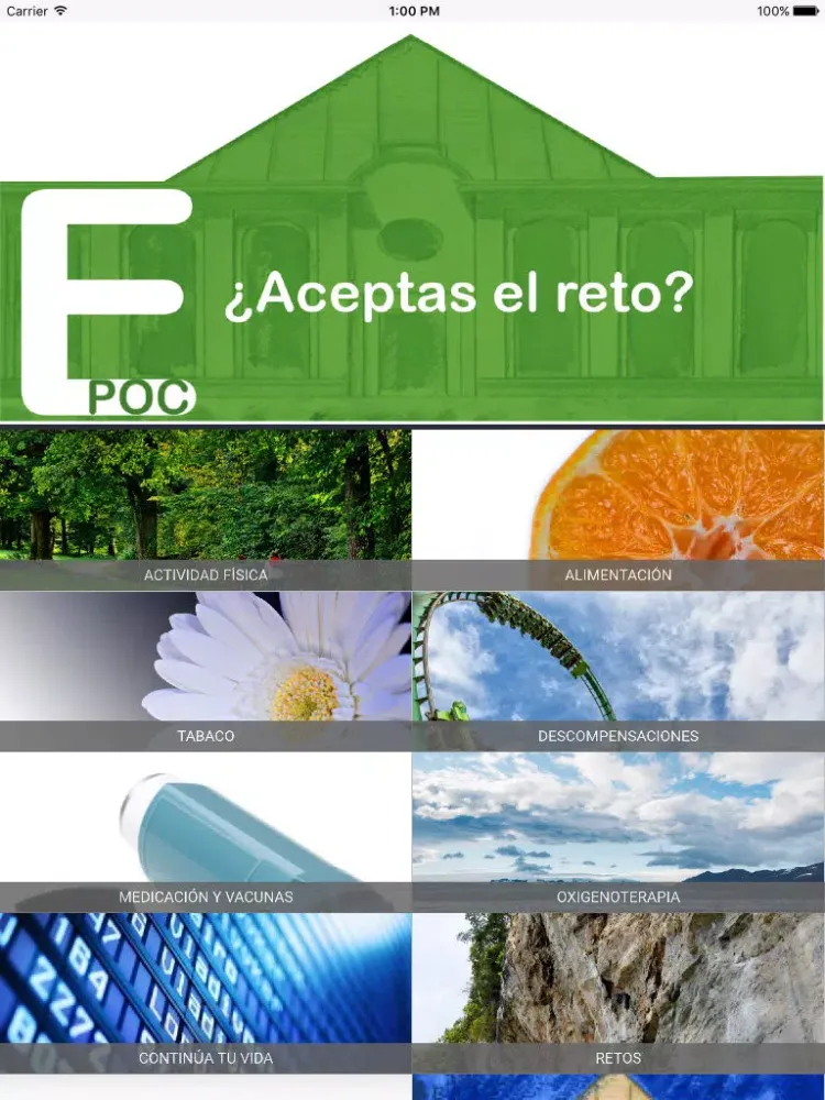 Esta es una app para mejorar la calidad de vida de pacientes con EPOC. Además, no se requiere registro para utilizarla y no se almacena ningún dato de usuario. Contiene: