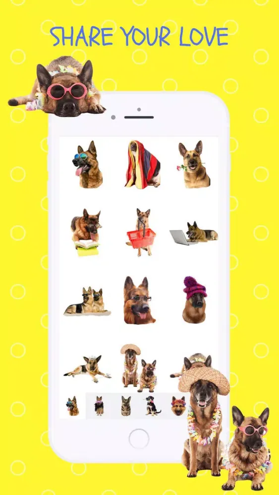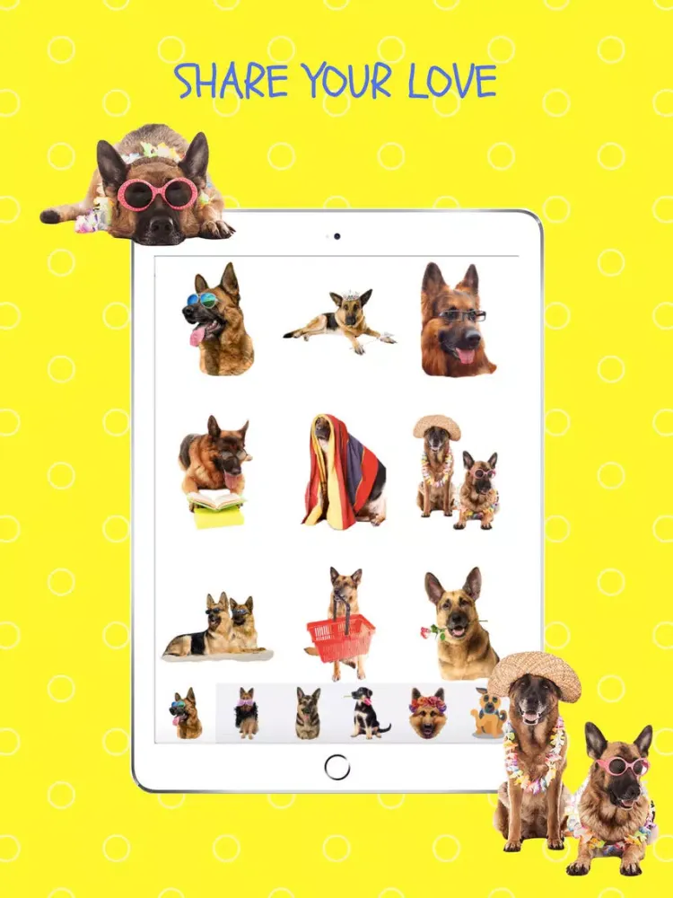Express your love for this intelligent, courageous, loyal breed of dogs with these cute and colorful emojis stickers. View and send them via text message, and also in ANY social media application that allows you to use photos.