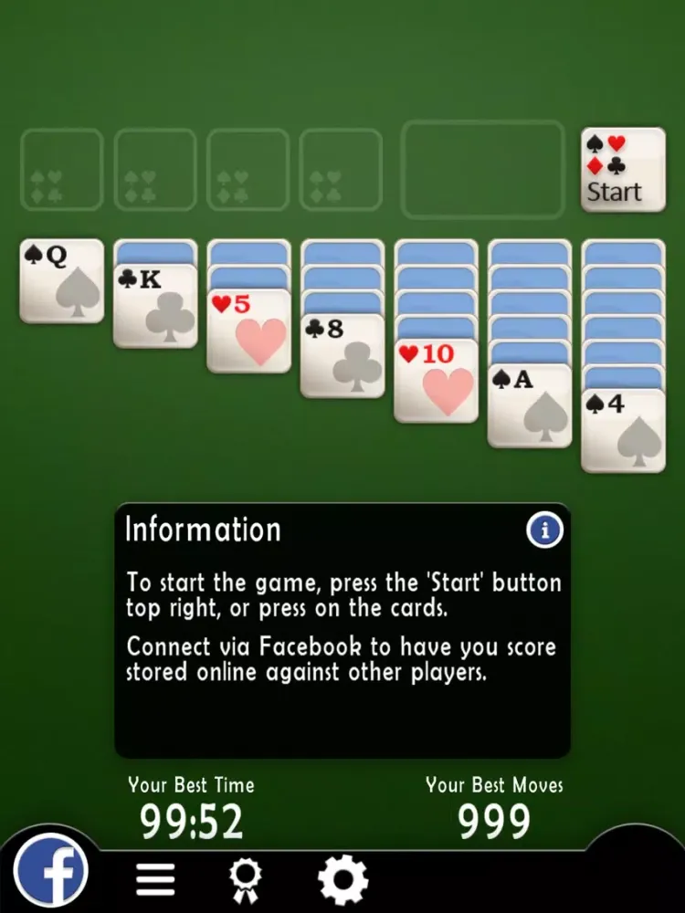 If you want to pass the time away then why not give this game of Solitaire ago, connect with your friends and challenge them to see who is the best. Upload your best moves and time to the world and social leaderboards.