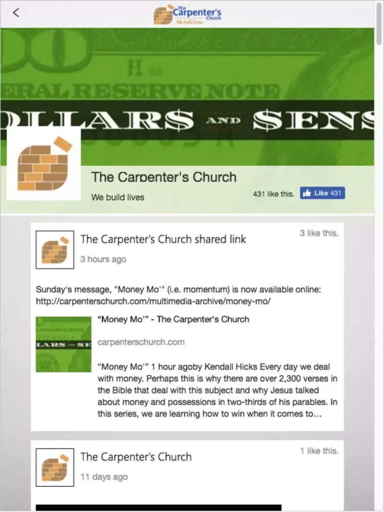 Connect and engage with our community through The Carpenter's Church app! Through our app you will be able to connect with groups, share prayer requests, listen and watch messages, give, read the Bible and more!