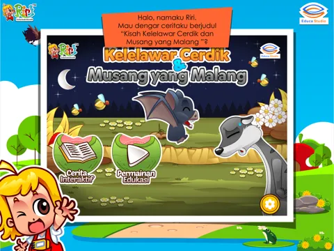 RIRI (Cerita Anak Interaktif & Game Edukasi) hadir dengan kisah baru : RIRI - KISAH KELELAWAR YANG CERDIK DAN MUSANG YANG MALANG.