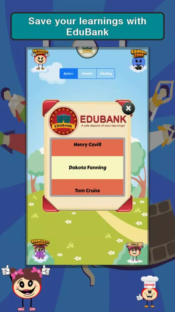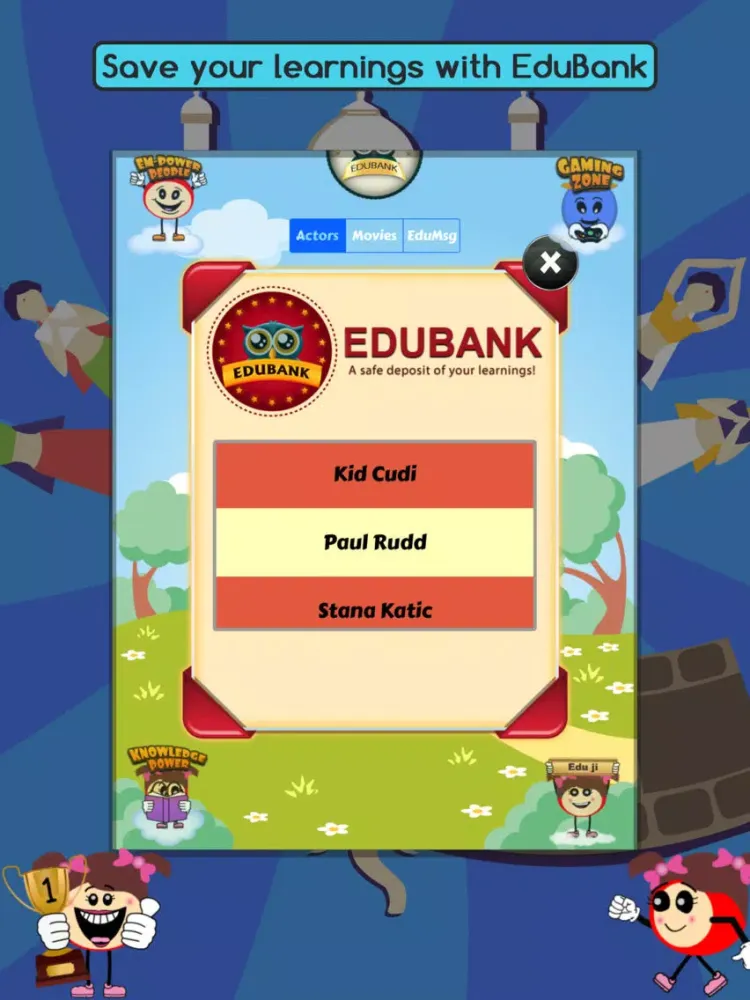 In the gaming section, you can search for the hidden Actors names in mesh. The list is given below. You must find all the Actors names to move to the next level. With every pass you get to learn something new. Attempt Trivia to boost the score and learn more about Actors. Get through the hurdles, gain perks and gifts. Collect them in your kitty, Edubank, for future reference. Know everything about Actors like movies, born on, Active, born at, Nationality, Died on, Spouse, died at, Real Name, Gender, Also Known As, Children, Awards, Alma mater, country, Cause of death, Era, Parents etc.