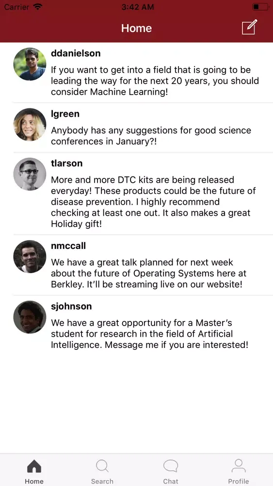 Create your profile in minutes and talk to your peers about all sorts of different opportunities. You can message other students and build your network right from your phone.