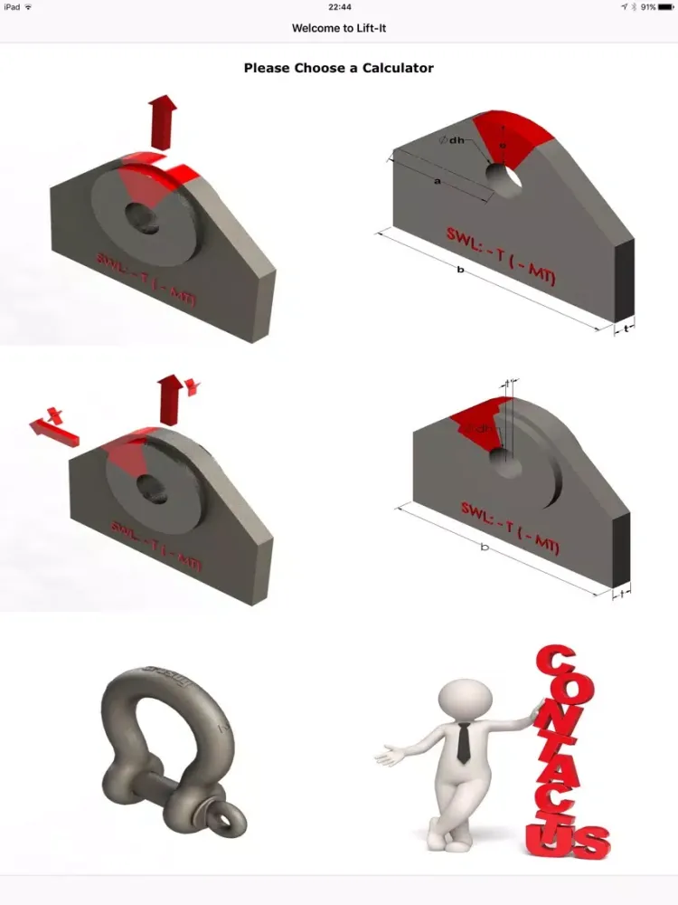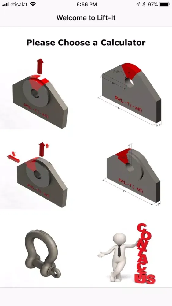 This App also helps you select the Proper Shackle for the load;