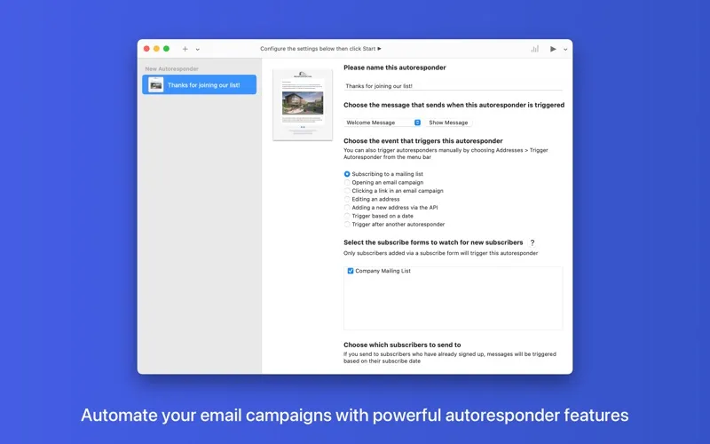 Create, manage, and deliver powerful email marketing campaigns right from your Mac!