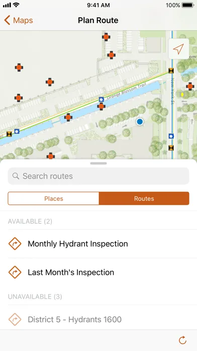 - Access Esri's navigation maps or use your own maps—search your assets, route on your roads, and view your layers.