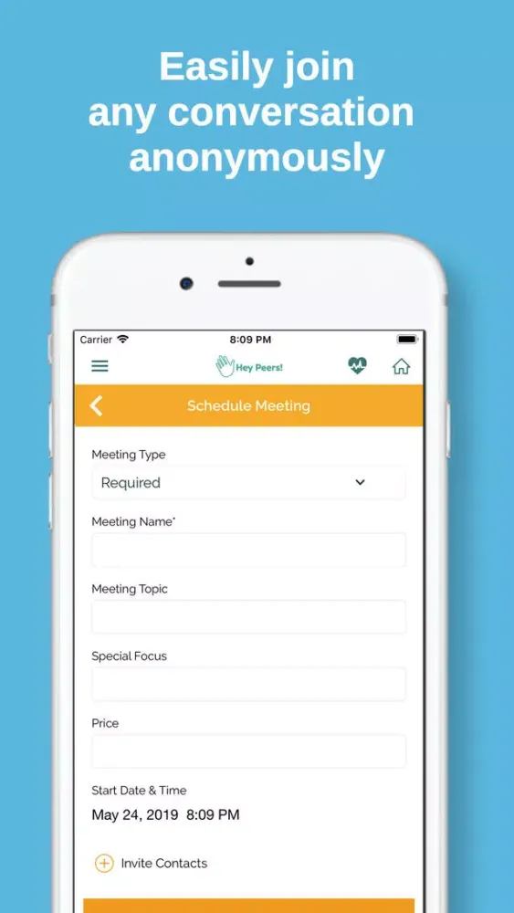 - Meet new people and start your own public or private peer support group