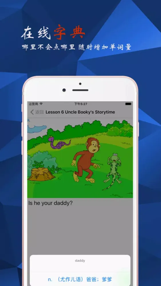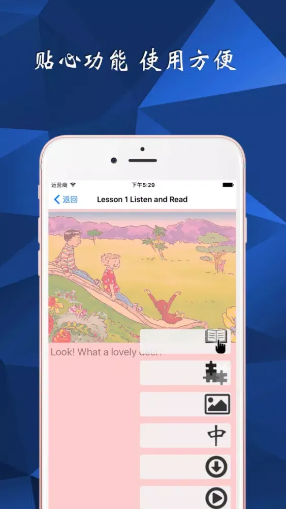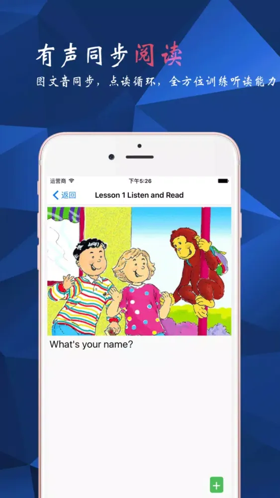 课文:全新展现课本内容,图片和文字语音同步,支持多种模式播放点读,同步教材编排,从此不用点读机;
