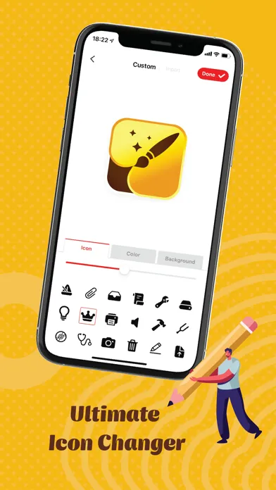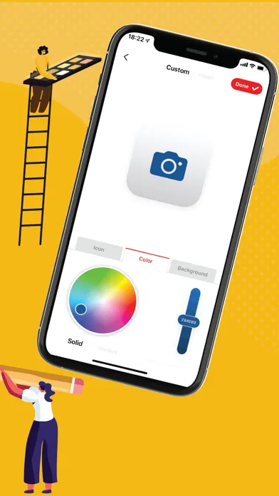 Choose from over 100 icons as well as upload your own photos to change app icon, Icon Changer gives you the most convenient tool to beautify your home screen. This app also allows you to customize icon with a wide range of color either solid or gradient for a higher personalization.
